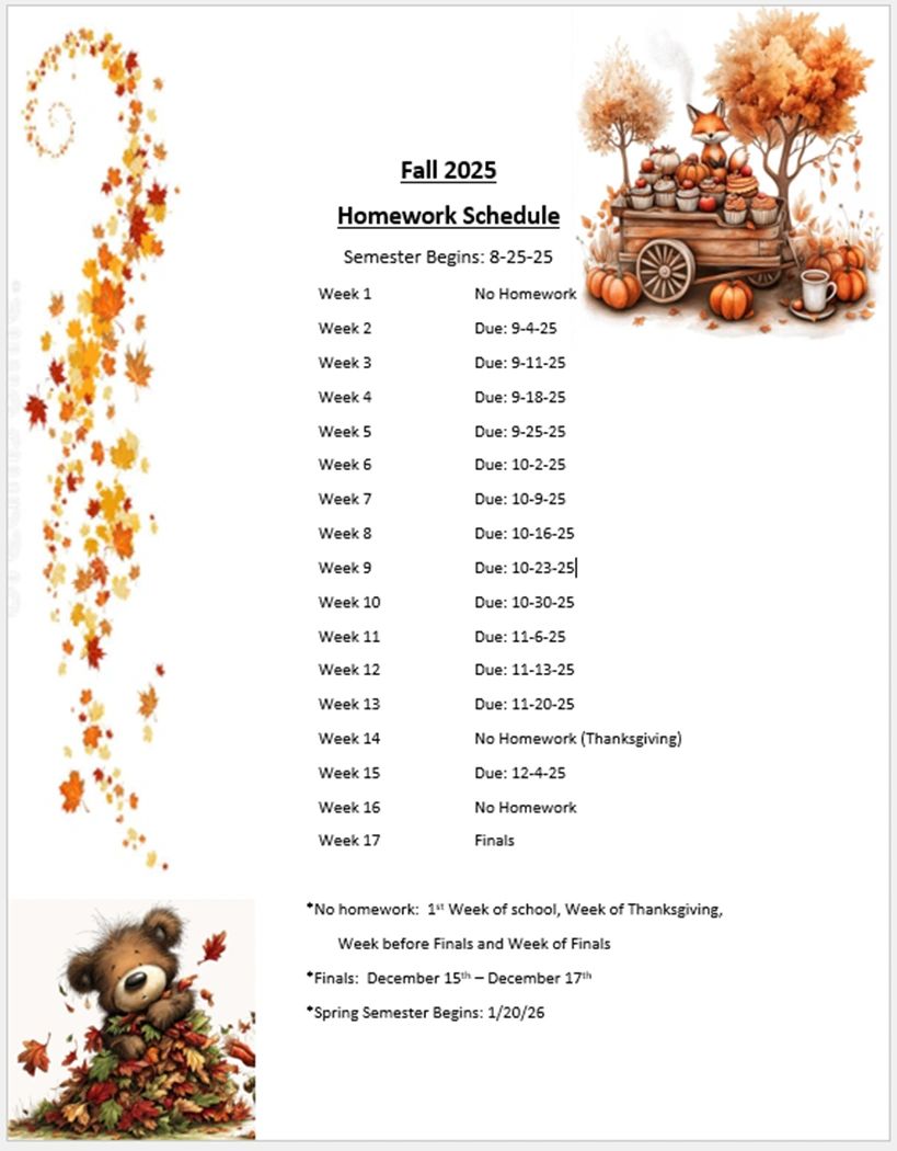 - HOMEWORK SCHEDULE